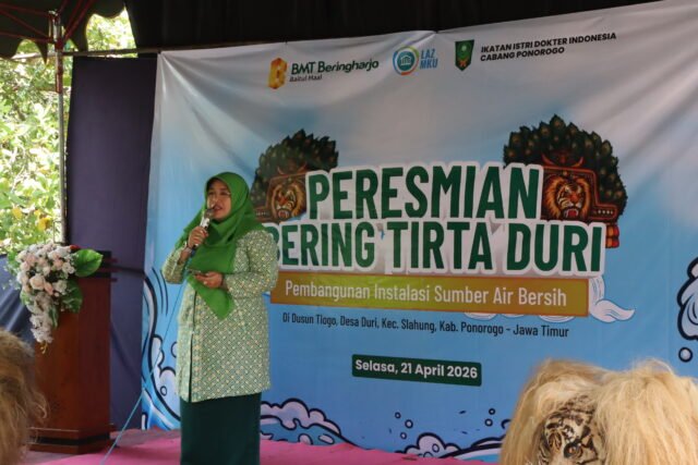 Sumur ke-8 kali ini dibangun untuk warga Dukuh Tlogo, Desa Duri, Kecamatan Slahung, Kabupaten Ponorogo, Jawa Timur. Acara peresmian diawali dengan sambutan dari Sekretaris Camat (Sekcam) Slahung, Bapak Dedy Rubiantoro, yang menyampaikan apresiasi atas sinergi antara BMT Beringharjo dan IIDI. Dalam sambutannya, beliau menekankan pentingnya kolaborasi lintas lembaga dalam mendukung kesejahteraan masyarakat serta berharap program ini dapat memberikan manfaat berkelanjutan.